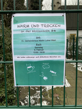 Passend zur Kältewelle, die Berlin und damit auch den Kiez erreicht hat, erschien vergangenen Monat eine Ausschreibung der evangelischen Kirchengemeinde für das Projekt 'WARM UND TROCKEN', für welches ehrenamtliche Wärmespender:innen gesucht wurden und immer noch werden.